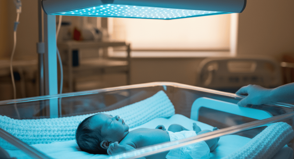 Mas quando os níveis de bilirrubina estão elevados, é necessário tratamento com fototerapia (banho de luz azul), para evitar complicações.